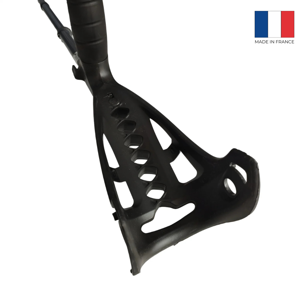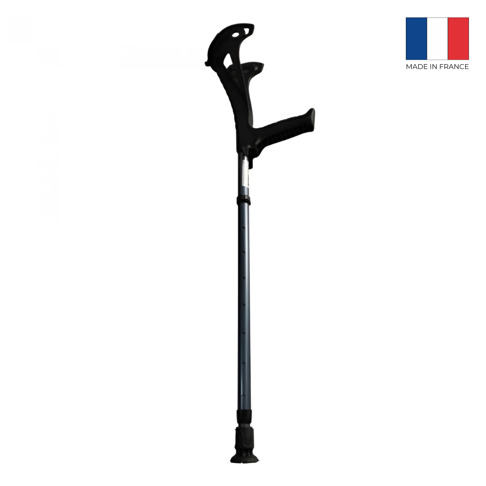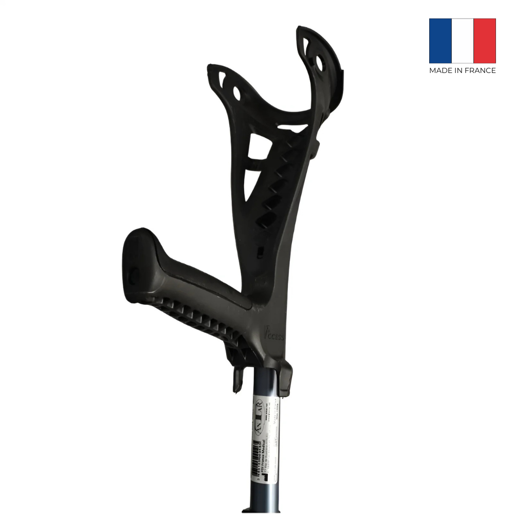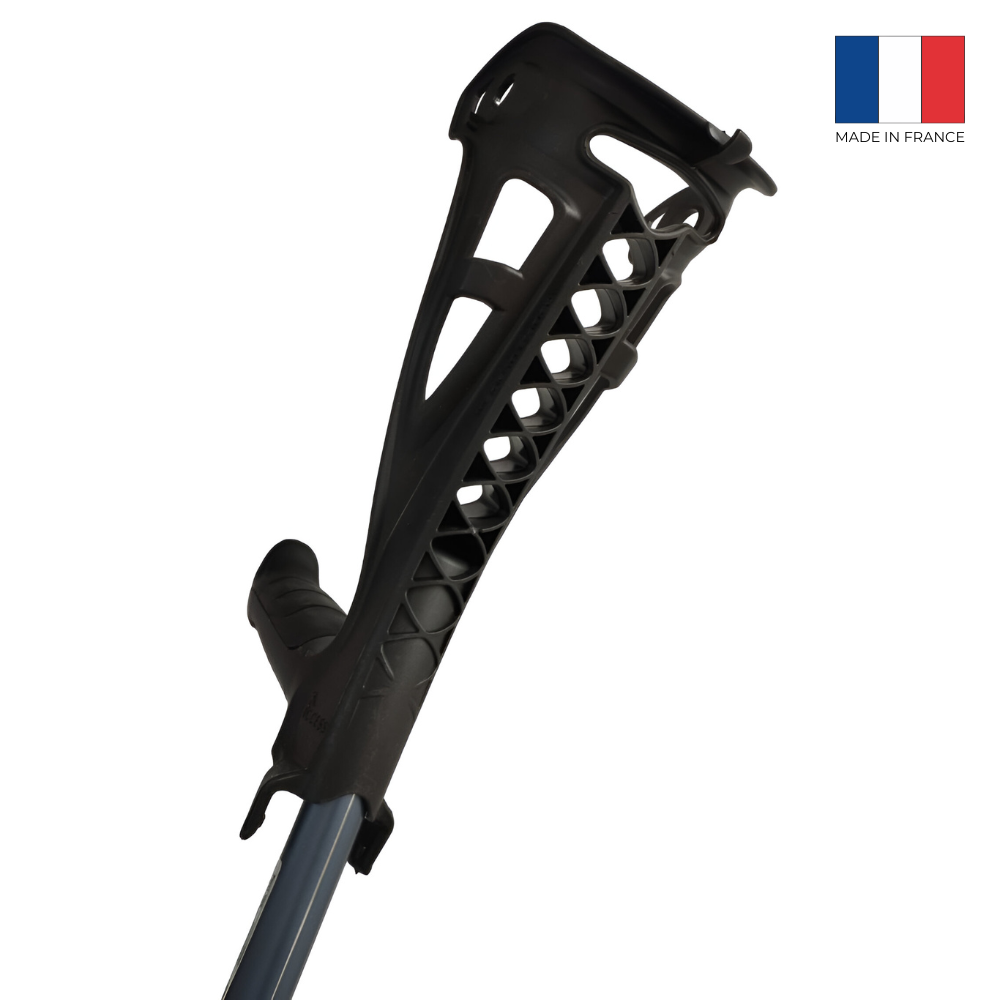 Designul unic și materialele utilizate absorb șocul generat la așezarea cârjei pe sol.
