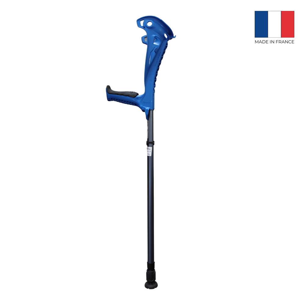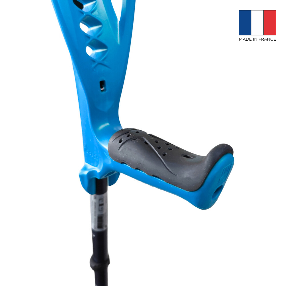 Designul unic și materialele utilizate absorb șocul generat la așezarea cârjei pe sol.