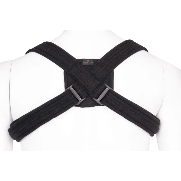 Orteză pentru imobilizarea claviculei, realizată din material textil din bumbac durabil, respirabil și hipoalergenic. Dispune de curele cu prindere Velcro detașabile la nivelul punctelor de sprijin, care pot fi ajustate și tăiate în funcție de circumferință. Cataramele independente permit reglarea precisă a tensiunii în funcție de nevoile pacientului, iar pernița dorsală din spumă oferă un plus de confort. Produsul este potrivit atât pentru adulți, cât și pentru copii.