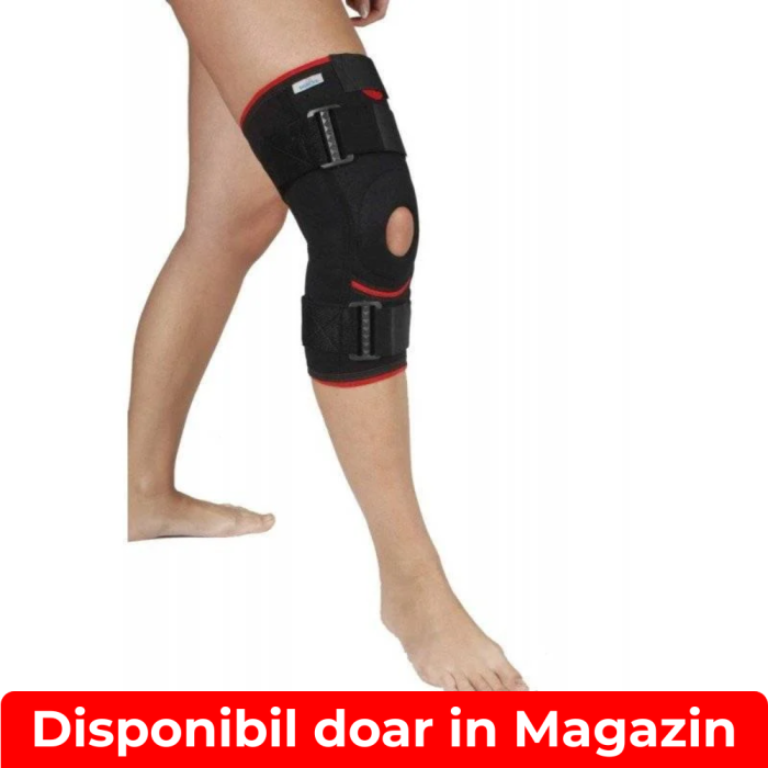 Stabilizează genunchiul în caz de leziuni ligamentare, menisc sau rotulă