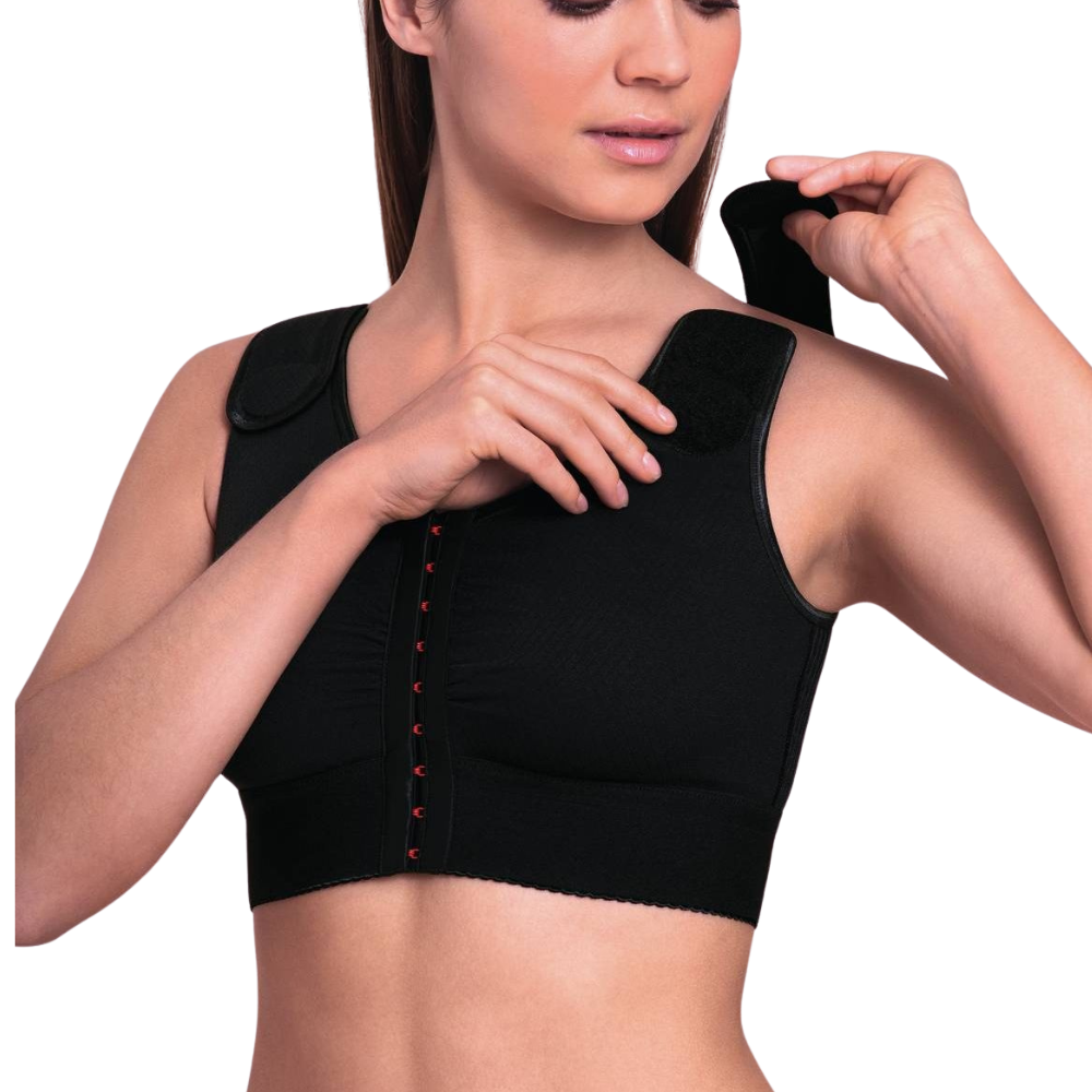 Sutien medical cu compresie, special conceput pentru perioada de recuperare după operațiile la nivelul sânului. Oferă stabilizare optimă, susținere confortabilă și compresie controlată pentru a sprijini vindecarea și drenajul limfatic. Ideal după terapii conservatoare ale sânului, reducție, lifting, augmentare cu implanturi sau reconstrucție cu țesut propriu.